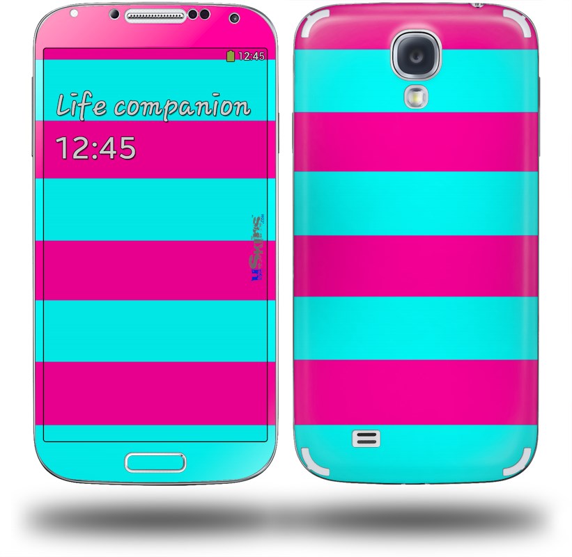 Psycho Stripes Neon Teal and Hot Pink - Decal Style Skin (fits Samsung Galaxy S IV S4)