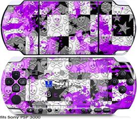 Sony PSP 3000 Skin - Purple Checker Skull Splatter