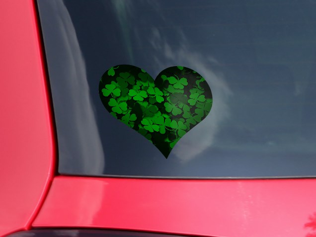 St Patricks Clover Confetti - I Heart Love Car Window Decal 6.5 x 5.5 inches