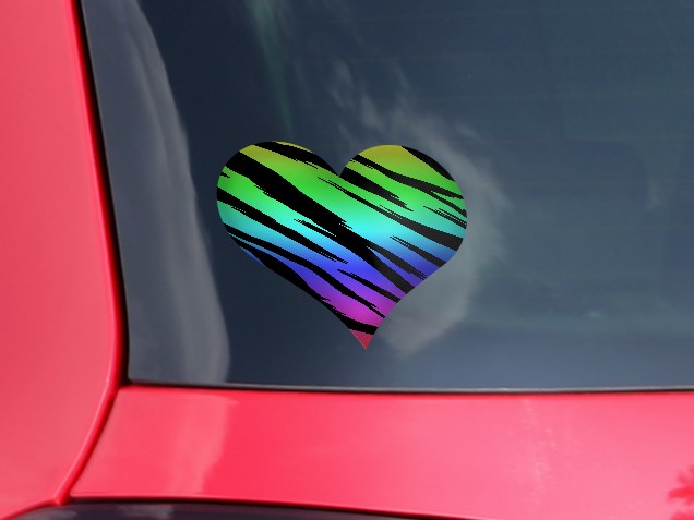 Tiger Rainbow - I Heart Love Car Window Decal 6.5 x 5.5 inches