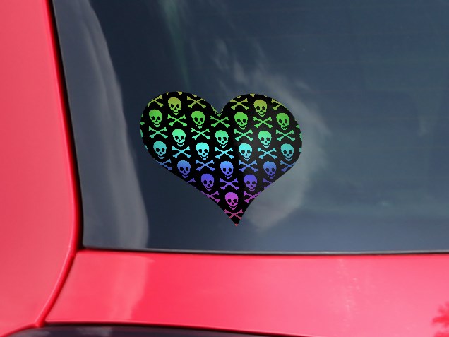 Skull and Crossbones Rainbow - I Heart Love Car Window Decal 6.5 x 5.5 inches