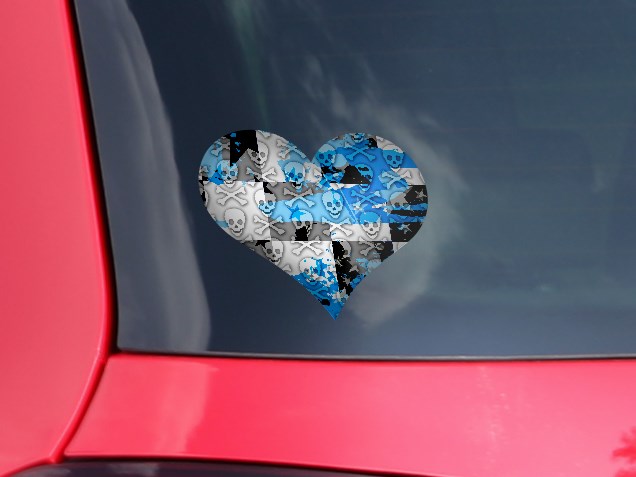 Checker Skull Splatter Blue - I Heart Love Car Window Decal 6.5 x 5.5 inches