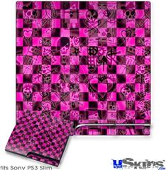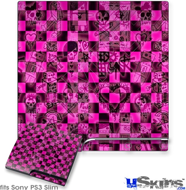 Decal Skin compatible with Sony PS3 Slim Pink Checkerboard Sketches