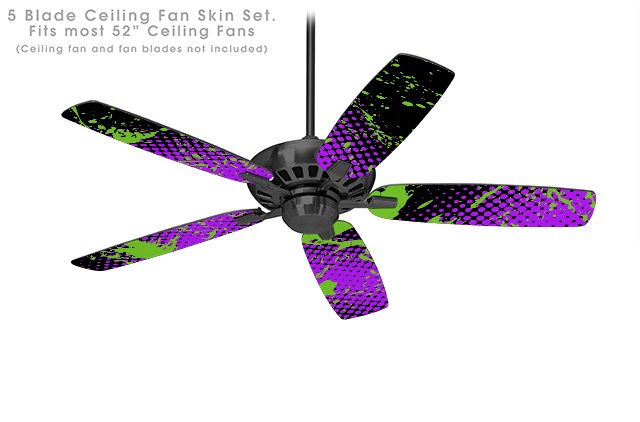 Halftone Splatter Green Purple - Ceiling Fan Skin Kit fits most 52 inch fans (FAN and BLADES SOLD SEPARATELY)