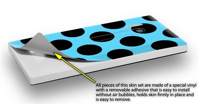 • Decal style vinyl skin covers front, back and side of Nokia Lumia 928 phone.