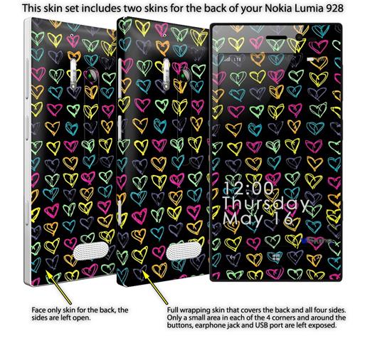 • Decal style vinyl skin covers front, back and side of Nokia Lumia 928 phone.