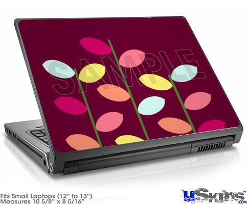 Laptop Skin (Small) - Plain Leaves On Burgundy