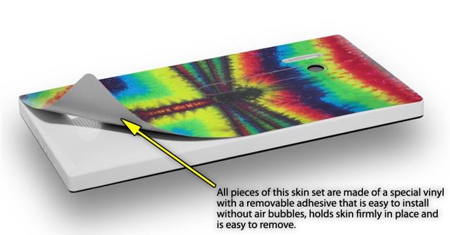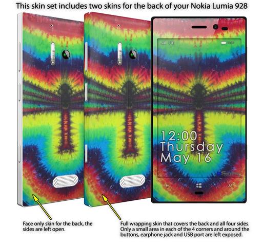 • Decal style vinyl skin covers front, back and side of Nokia Lumia 928 phone.