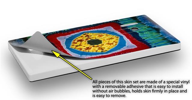 uSkins™ are self adhering vinyl skins that help prevent scratches and look great doing it. Unlike bulky silicon, plastic or metal cases and faceplates, uSkins are designed to be thin and very tough. uSkins are a composite of two layers of commercial grade materials. The bottom layer is a soft, flexible vinyl with a special removable adhesive that is easily positioned, applied without air bubbles, and effortlessly removed without leaving a sticky residue. Next we print the bottom layer with UV protected, fade resistant inks that deliver superb photo quality designs in vibrant colors. Finally we bond a professional grade laminate over the entire skin adding a glossy protective finish.