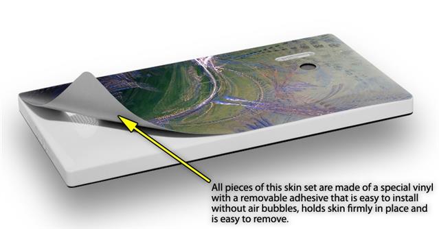 uSkins™ are self adhering vinyl skins that help prevent scratches and look great doing it. Unlike bulky silicon, plastic or metal cases and faceplates, uSkins are designed to be thin and very tough. uSkins are a composite of two layers of commercial grade materials. The bottom layer is a soft, flexible vinyl with a special removable adhesive that is easily positioned, applied without air bubbles, and effortlessly removed without leaving a sticky residue. Next we print the bottom layer with UV protected, fade resistant inks that deliver superb photo quality designs in vibrant colors. Finally we bond a professional grade laminate over the entire skin adding a glossy protective finish.