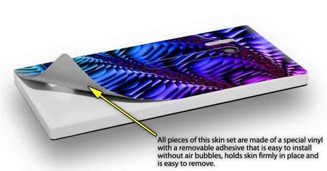 uSkins™ are self adhering vinyl skins that help prevent scratches and look great doing it. Unlike bulky silicon, plastic or metal cases and faceplates, uSkins are designed to be thin and very tough. uSkins are a composite of two layers of commercial grade materials. The bottom layer is a soft, flexible vinyl with a special removable adhesive that is easily positioned, applied without air bubbles, and effortlessly removed without leaving a sticky residue. Next we print the bottom layer with UV protected, fade resistant inks that deliver superb photo quality designs in vibrant colors. Finally we bond a professional grade laminate over the entire skin adding a glossy protective finish.