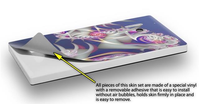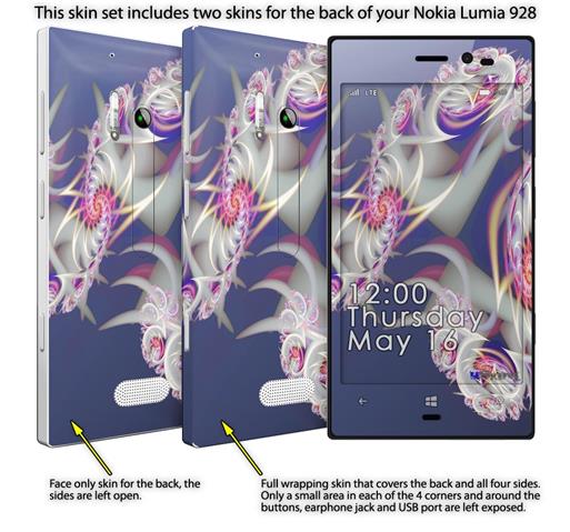 • Decal style vinyl skin covers front, back and side of Nokia Lumia 928 phone.