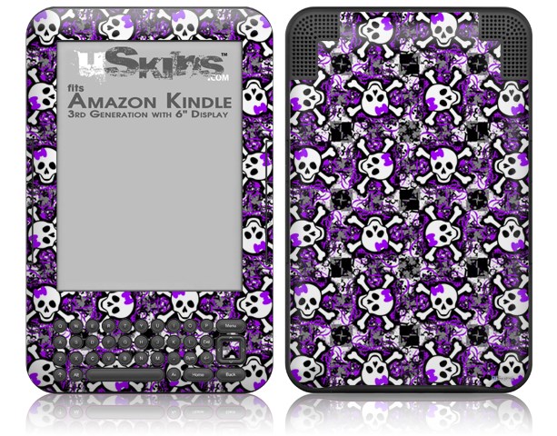 Splatter Girly Skull Purple - Decal Style Skin fits Amazon Kindle 3 Keyboard (with 6 inch display)