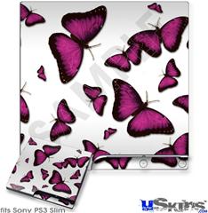 Decal Skin compatible with Sony PS3 Slim Butterflies Purple