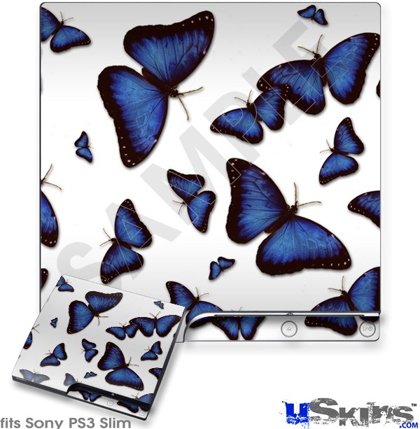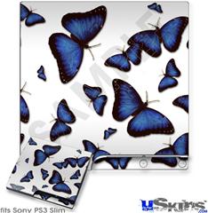 Decal Skin compatible with Sony PS3 Slim Butterflies Blue