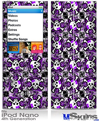 iPod Nano 4G Skin - Splatter Girly Skull Purple