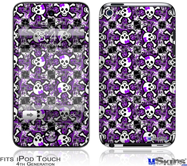 iPod Touch 4G Decal Style Vinyl Skin - Splatter Girly Skull Purple