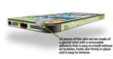 uSkins™ are self adhering vinyl skins that help prevent scratches and look great doing it. Unlike bulky silicon, plastic or metal cases and faceplates, uSkins are designed to be thin and very tough. uSkins are a composite of two layers of commercial grade materials. The bottom layer is a soft, flexible vinyl with a special removable adhesive that is easily positioned, applied without air bubbles, and effortlessly removed without leaving a sticky residue. Next we print the bottom layer with UV protected, fade resistant inks that deliver superb photo quality designs in vibrant colors. Finally we bond a professional grade laminate over the entire skin adding a glossy protective finish.