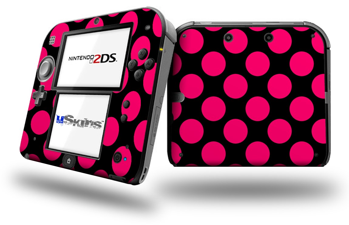 Kearas Polka Dots Pink On Black - Decal Style Vinyl Skin fits Nintendo 2DS - 2DS NOT INCLUDED