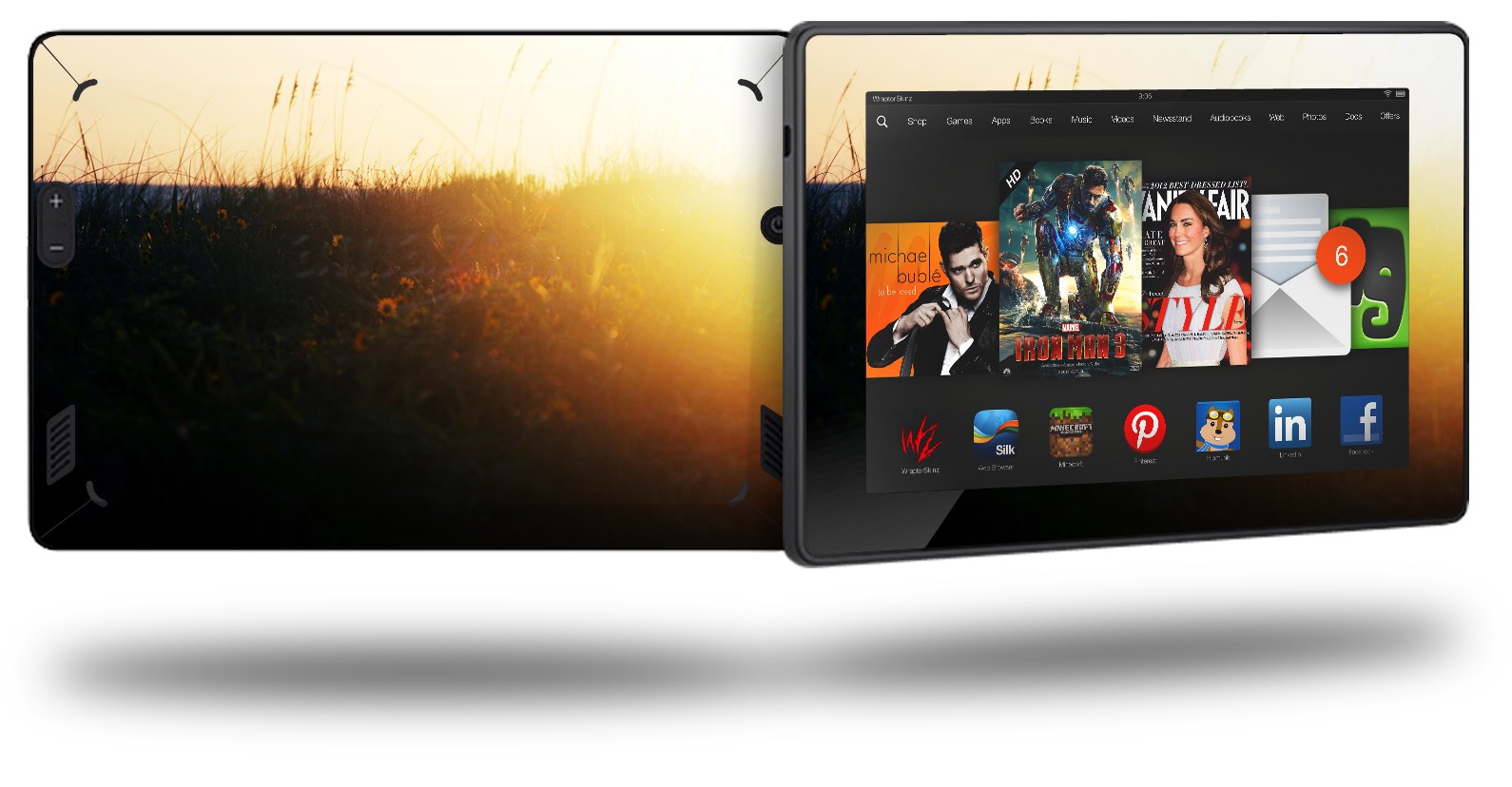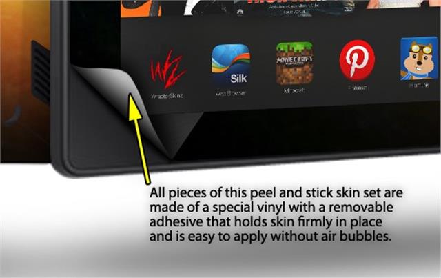 • Skin covers front and back of the Kindle.