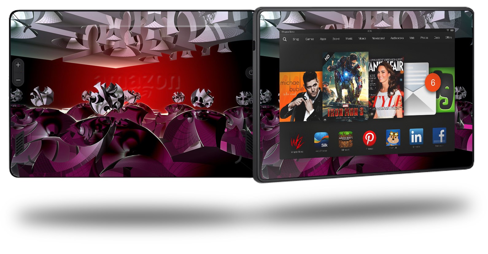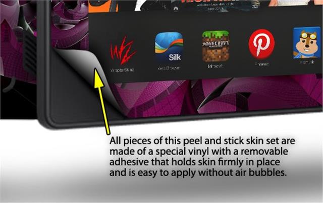 • Skin covers front and back of the Kindle.