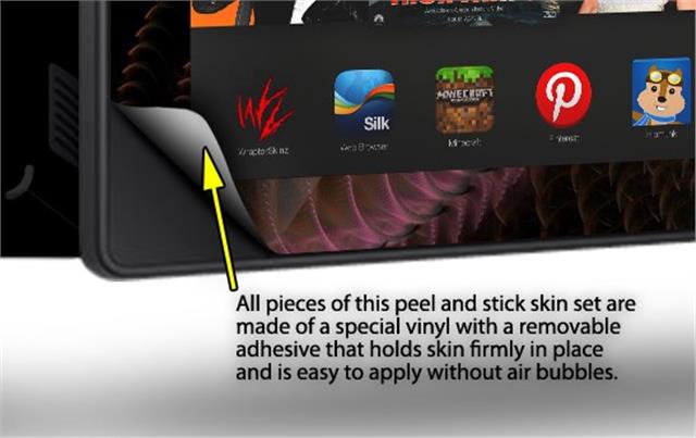 • Skin covers front and back of the Kindle.