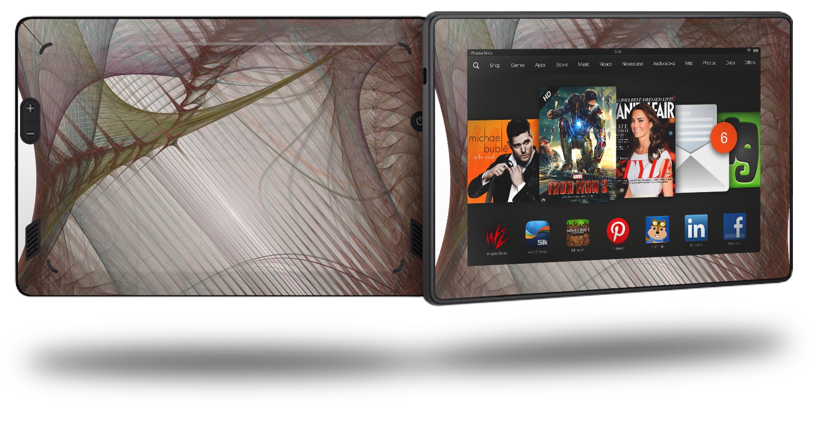 • Skin covers front and back of the Kindle.
