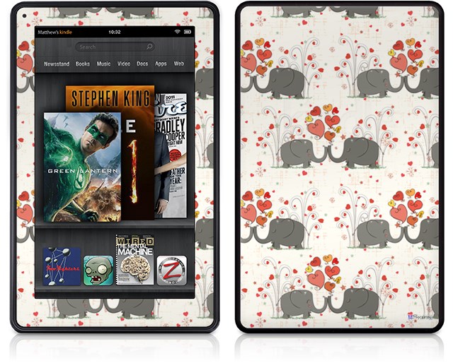 Amazon Kindle Fire (Original) Decal Style Skin - Elephant Love