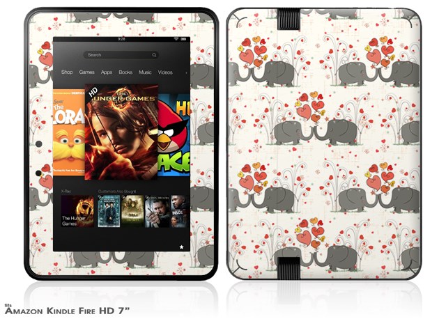 Elephant LoveDecal Style Skin fits 2012 Amazon Kindle Fire HD 7 inch