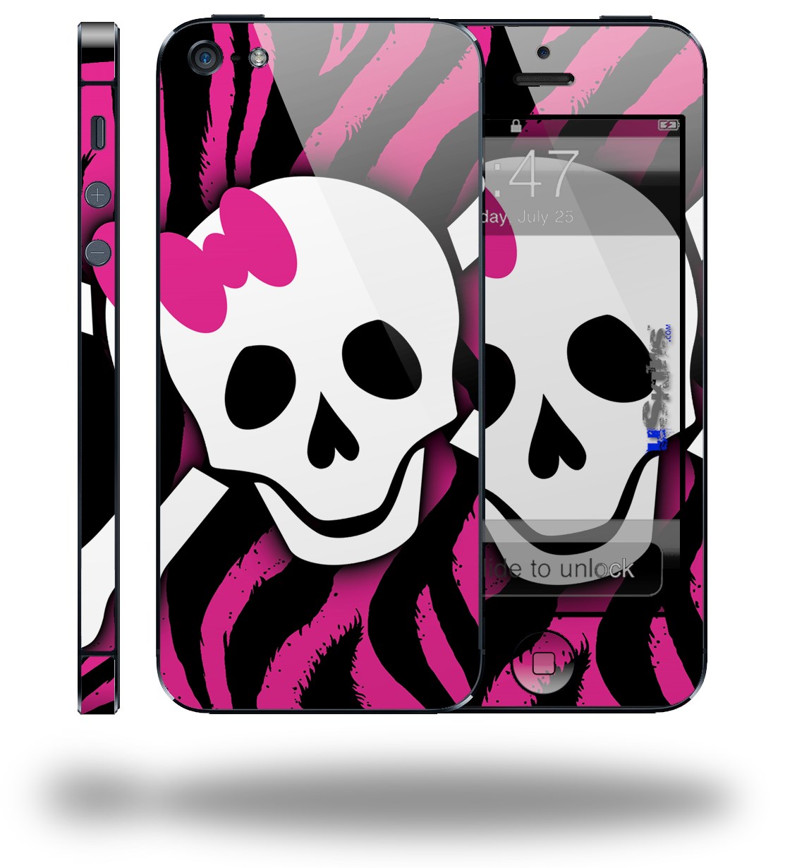 Pink Zebra Skull - Decal Style Vinyl Skin (fits Apple Original iPhone 5, NOT the iPhone 5C or 5S)