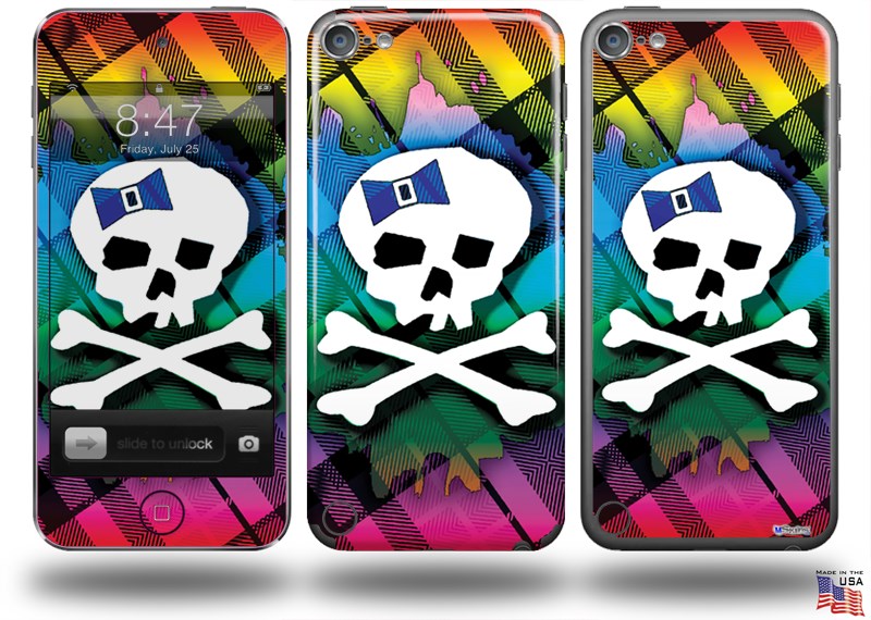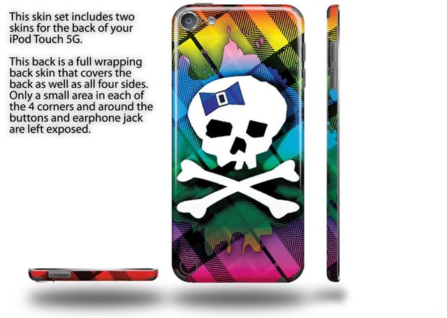 Rainbow Plaid Skull Decal Style Vinyl Skin - fits Apple iPod Touch 5G (IPOD NOT INCLUDED)