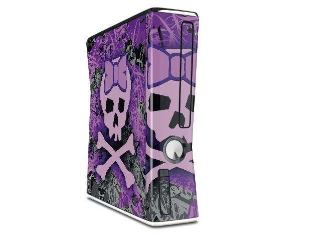 Purple Girly Skull Decal Style Skin for XBOX 360 Slim Vertical
