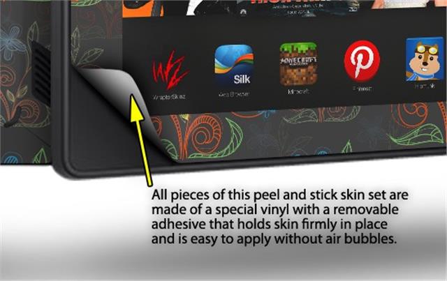 • Skin covers front and back of the Kindle.