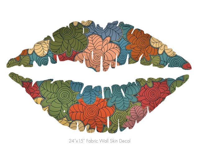 Flowers Pattern 01 - Kissing Lips Fabric Wall Skin Decal measures 24x15 inches