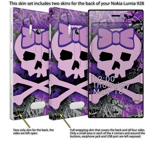 Purple Girly Skull - Decal Style Skin (fits Nokia Lumia 928)