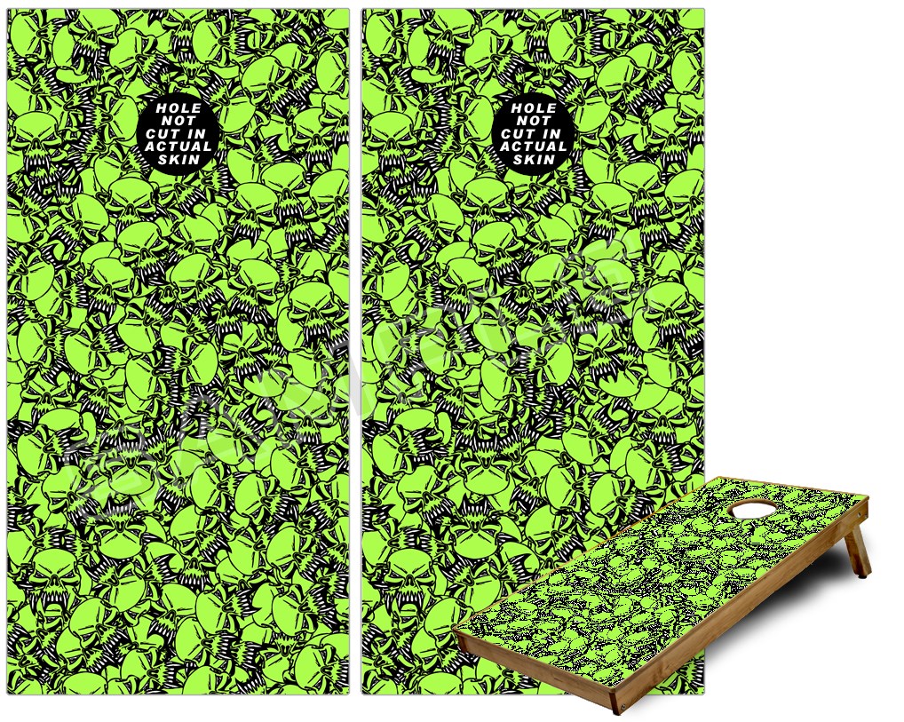 Cornhole Game Board Vinyl Skin Wrap Kit - Scattered Skulls Neon Green fits 24x48 game boards (GAMEBOARDS NOT INCLUDED)