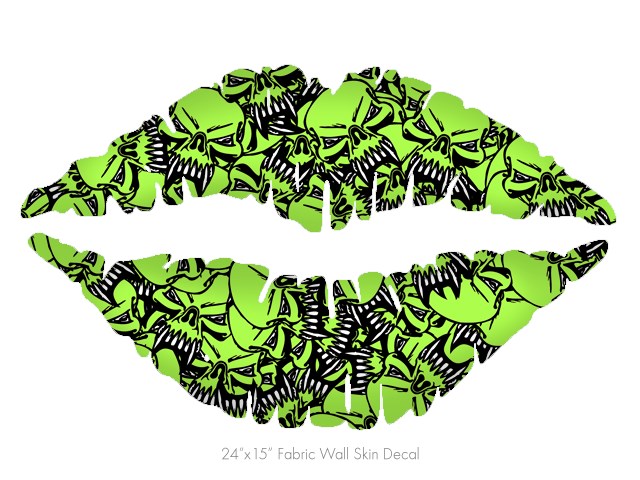 Scattered Skulls Neon Green - Kissing Lips Fabric Wall Skin Decal measures 24x15 inches