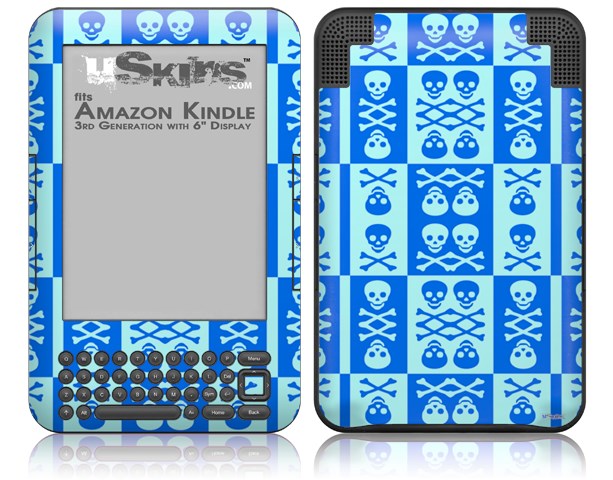 Skull And Crossbones Pattern Blue - Decal Style Skin fits Amazon Kindle 3 Keyboard (with 6 inch display)