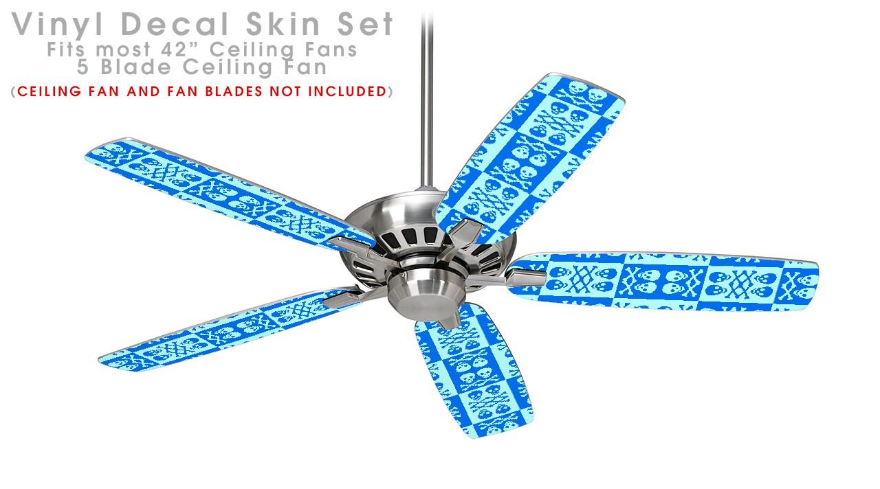 Skull And Crossbones Pattern Blue - Ceiling Fan Skin Kit fits most 42 inch fans (FAN and BLADES SOLD SEPARATELY)