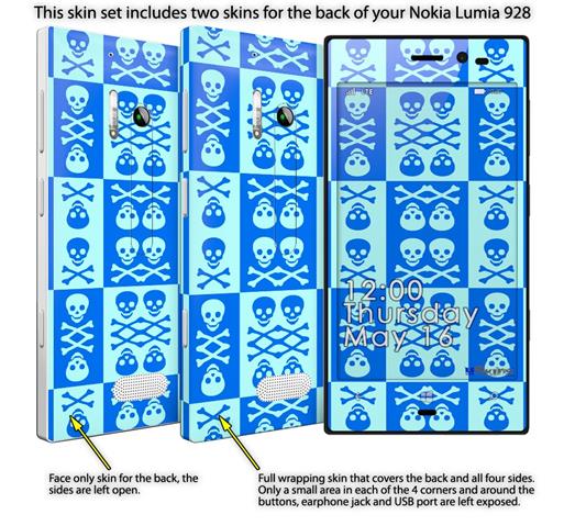 Skull And Crossbones Pattern Blue - Decal Style Skin (fits Nokia Lumia 928)