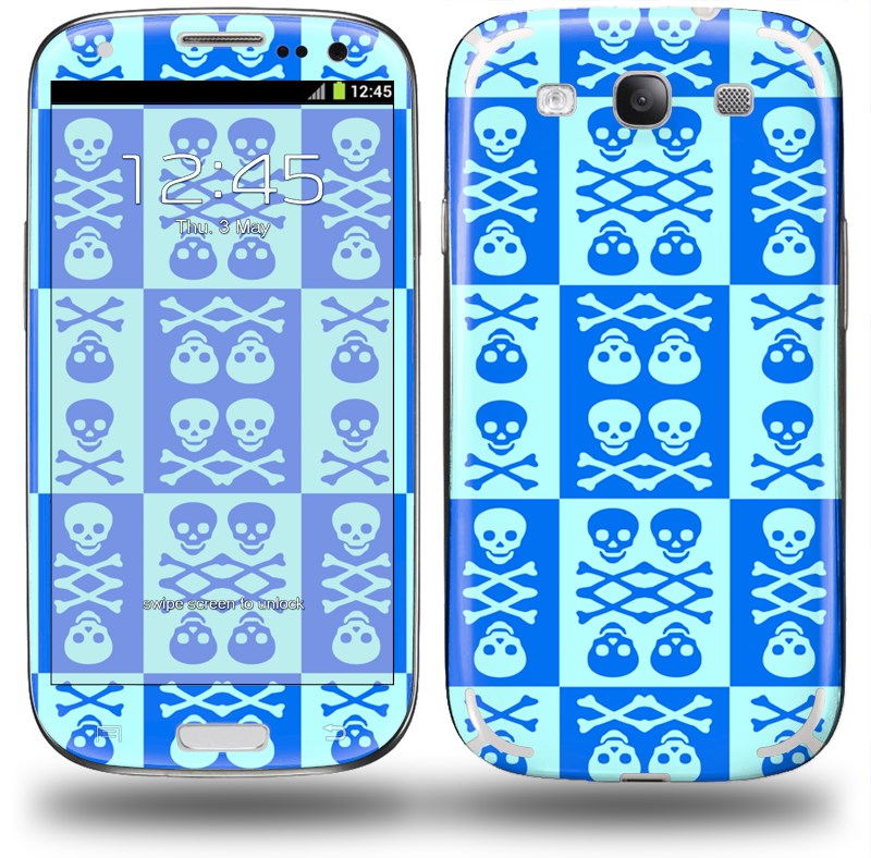 Skull And Crossbones Pattern Blue - Decal Style Skin (fits Samsung Galaxy S III S3)