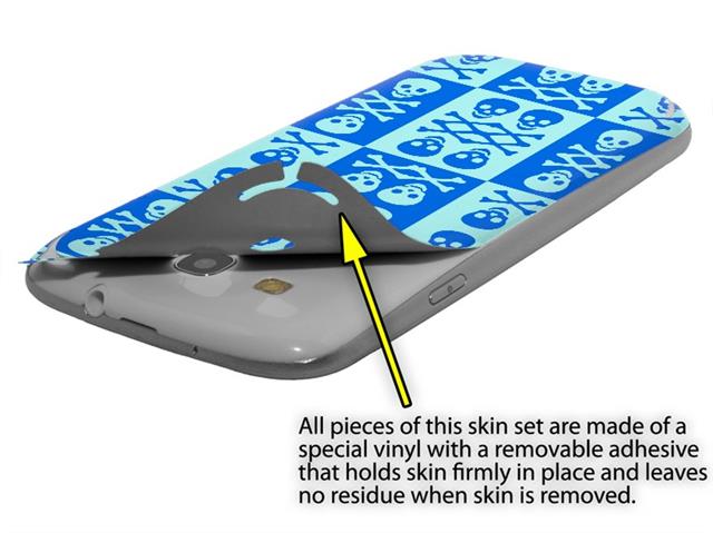 • Decal style vinyl skin covers front and back of Samsung Galaxy S III S3 phone.
