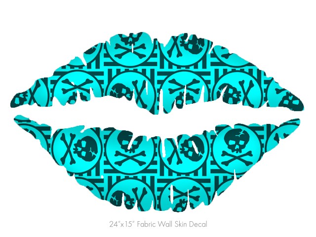 Skull Patch Pattern Blue - Kissing Lips Fabric Wall Skin Decal measures 24x15 inches