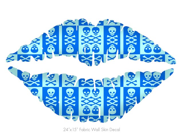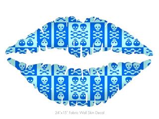 Skull And Crossbones Pattern Blue - Kissing Lips Fabric Wall Skin Decal measures 24x15 inches