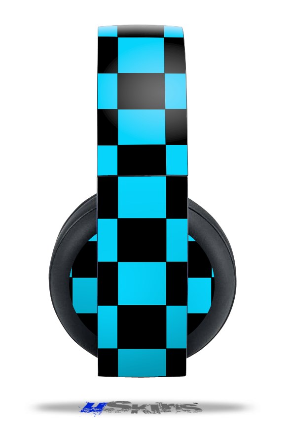Vinyl Decal Skin Wrap compatible with Original Sony PlayStation 4 Gold Wireless Headphones Checkers Blue (PS4 HEADPHONES NOT INCLUDED)
