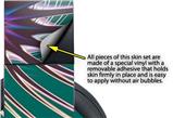 WraptorSkinz® are self adhering vinyl skins that help prevent scratches and look great doing it. Unlike bulky silicon, plastic or metal cases and faceplates, WraptorSkinz® are designed to be thin and very tough. WraptorSkinz® are a composite of two layers of commercial grade materials. The bottom layer is a soft, flexible vinyl with a special removable adhesive that is easily positioned, applied without air bubbles. Next we print the bottom layer with UV protected, fade resistant inks that deliver superb photo quality designs in vibrant colors. Finally we bond a professional grade laminate over the entire skin adding a glossy protective finish.