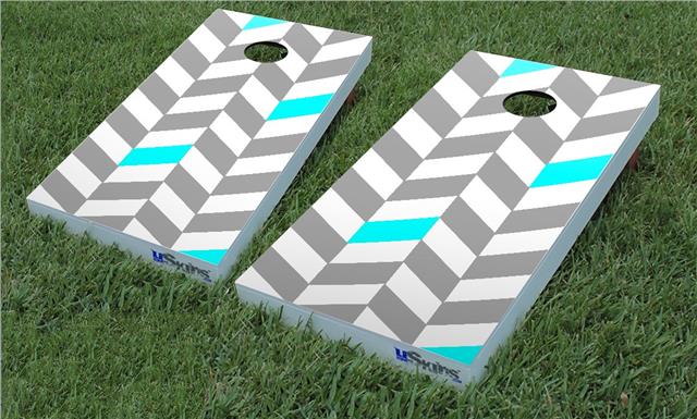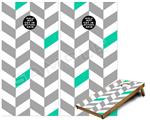 Cornhole Game Board Vinyl Skin Wrap Kit - Chevrons Gray And Aqua fits 24x48 game boards (GAMEBOARDS NOT INCLUDED)