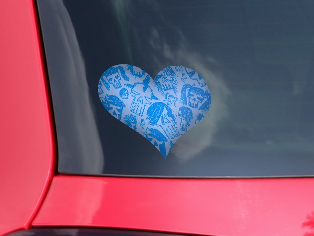 Skull Sketches Blue - I Heart Love Car Window Decal 6.5 x 5.5 inches