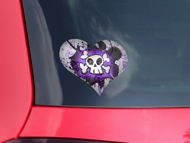 Cartoon Skull Purple - I Heart Love Car Window Decal 6.5 x 5.5 inches