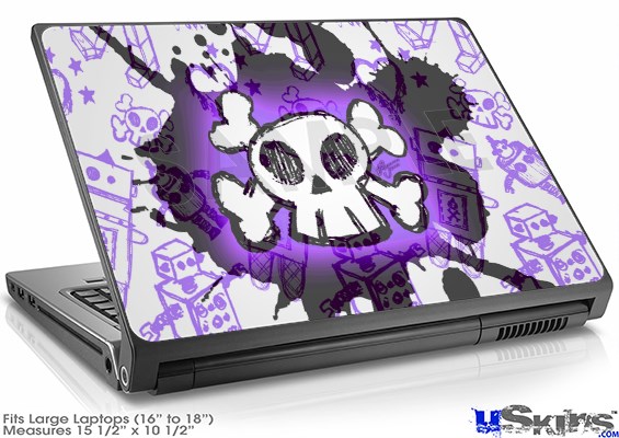 Laptop Skin (Large) - Cartoon Skull Purple